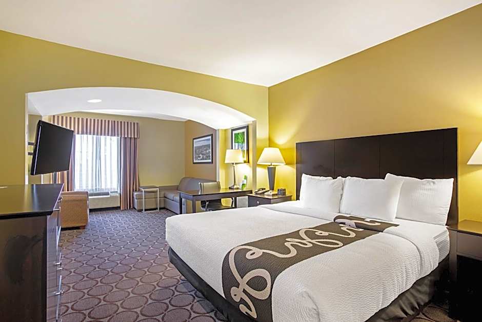 This room features a flat-screen TV with cable channels and a seating area with sofa bed.